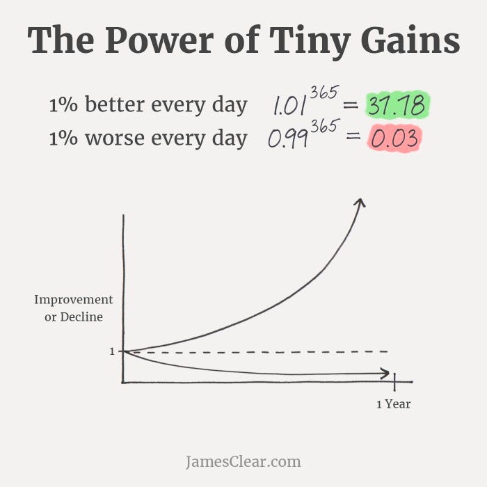 In compound growth domains, focus on getting 1% better every day, and not getting worse. Over time, the results will come.