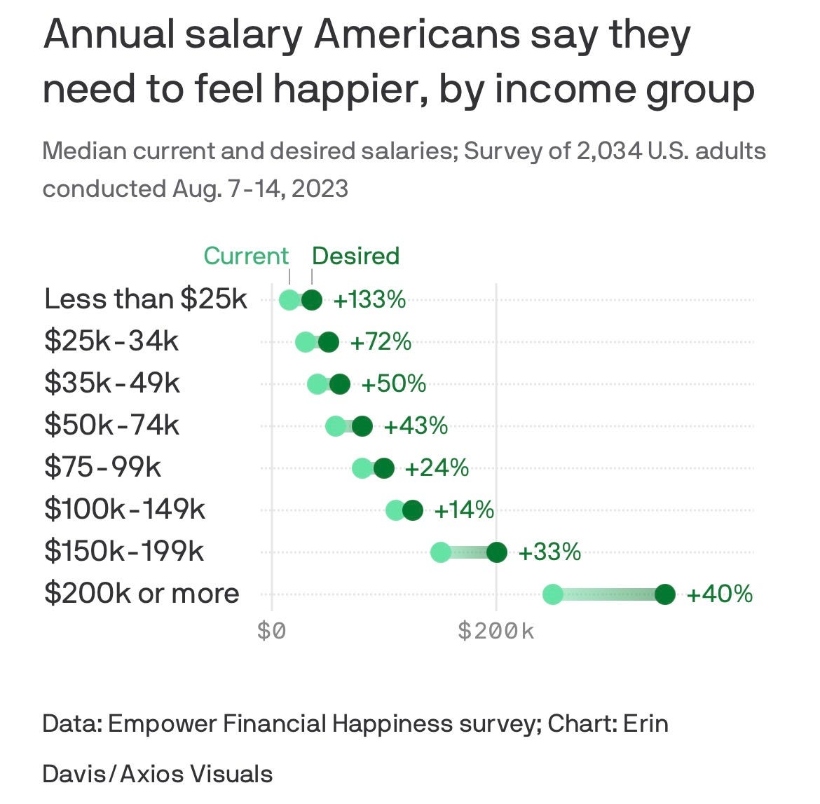 No one has enough money. If you asked anyone—of any amount of wealth—they’d think they need more money to be happy.