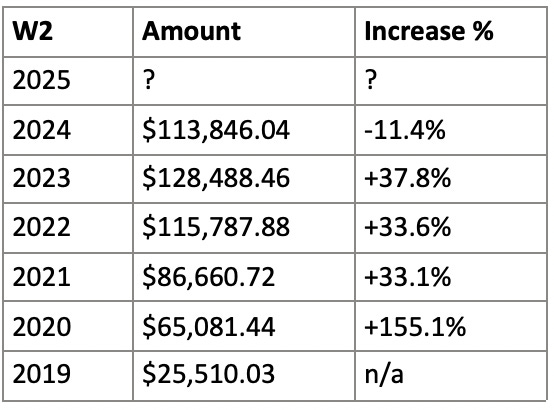 From 2019-2024 I made $535,374.57 in W2 earnings. It worked. Most importantly, I managed to save a lot of that.