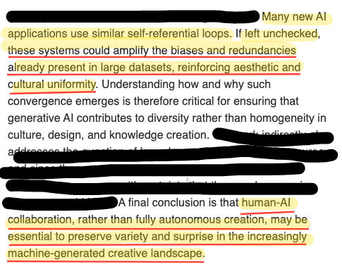 Regardless of how diverse the starting prompts were – and regardless of how much randomness the systems were allowed – the outputs quickly converged onto a narrow set of generic, familiar visual themes: atmospheric cityscapes, grandiose buildings and pastoral landscapes. Even more striking, the system quickly “forgot” its starting prompt.