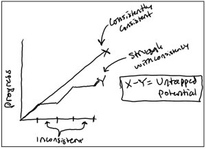 The delta between the same person who is consistently consistent vs. that same person who experiences periods of inconsistency in their life is untapped potential. I call this the Self Actualization Gap.