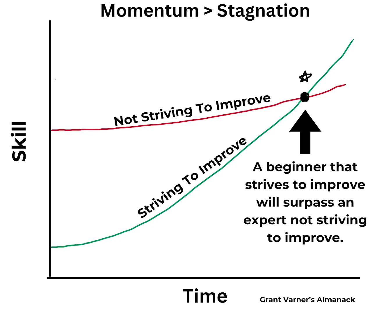 If you’re an expert, you need to keep improving, or you’ll get passed by a beginners that are committed to improvement.