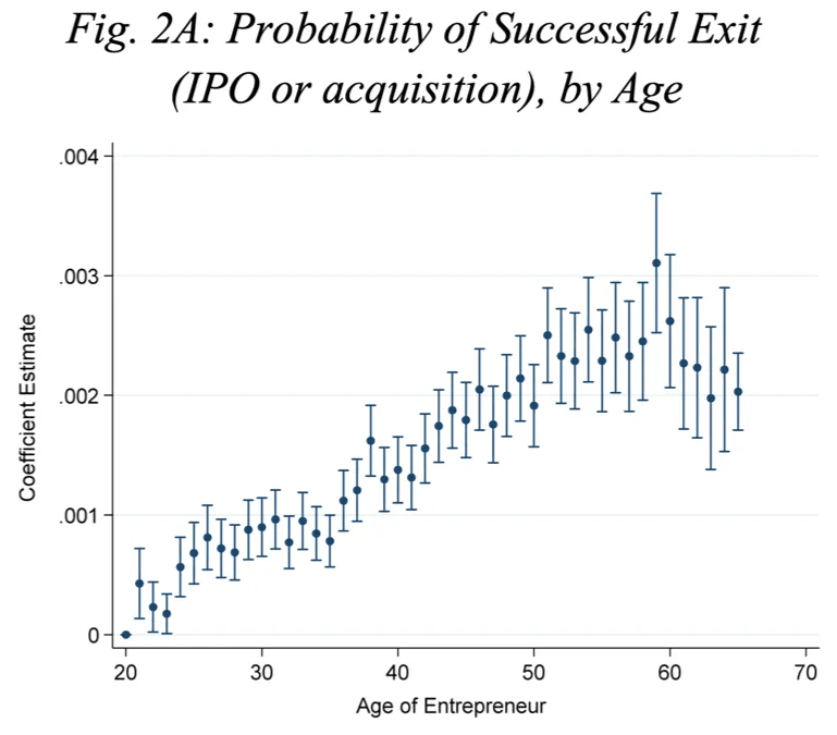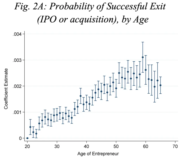 A 50-year old tech founder is 2x as likely to start a successful company than one who is 30 years old.