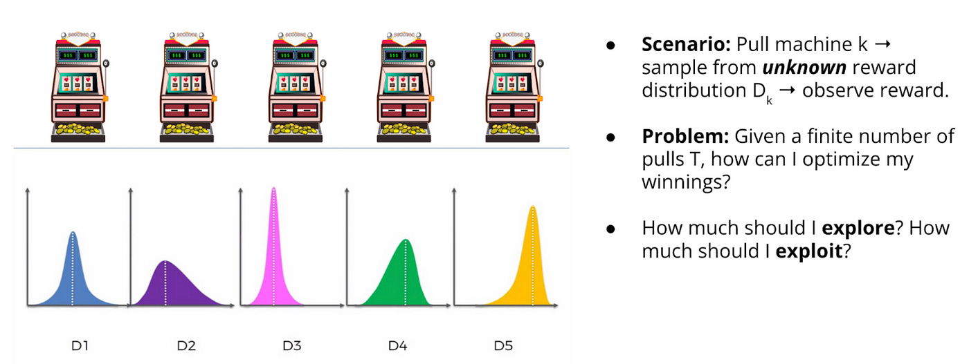 Imagine walking into a casino. There are three slot machines. You want to win the most money over time.