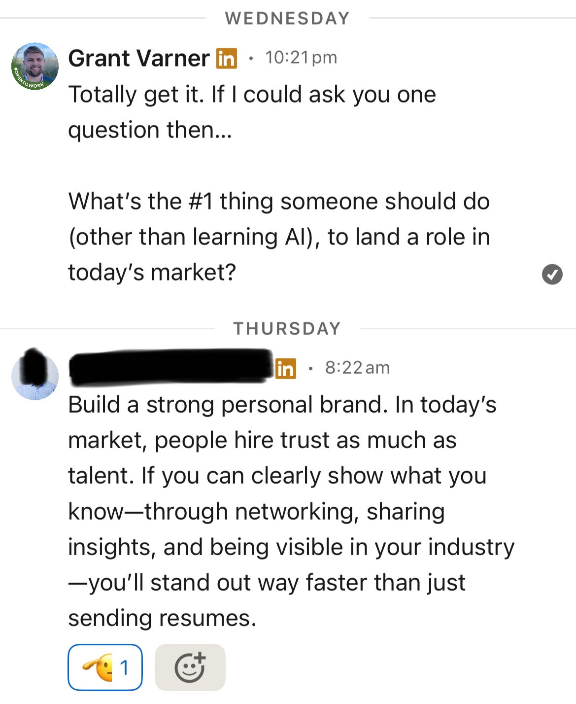 While posting more niche tech content related to AI and data warehouses, on my LinkedIn, I’ve had more leaders of tech companies engaging with my posts. One such was a VP of Sales at a Tier 2 tech company - so I connected with him and reached out for advice on how I can land a position - other than learning AI.